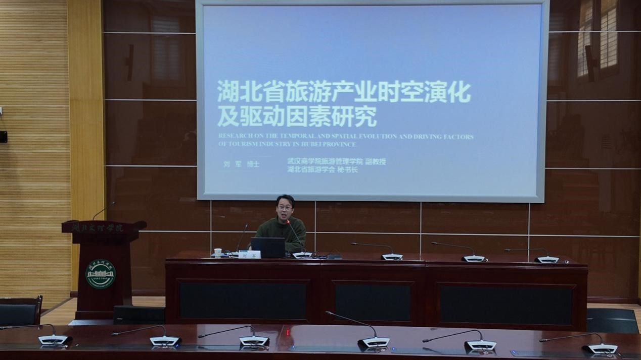 武汉商学院旅游管理学院副教授、教育部·旅游管理专业国家虚拟教研室秘书长刘军博士从《湖北省旅游产业时空演化及驱动因素研究》出发,基于空间计量方法对2014-2023年旅游六要素数据分析,深入揭示旅游产业空间集聚的特征、演化轨迹及驱动机制。他提出,湖北旅游产业发展主要受到产业吸引力、经济支撑力、生态约束力三大核心维度的影响,且已由过去的单一要素驱动逐步演化为“政策—市场—技术—生态”多系统交互的复杂耦合机制。该研究不仅为理解鄂西生态文化旅游圈的发展逻辑提供了坚实的实证基础,也为我校开展地域特色文旅研究提供了重要的方法参照。