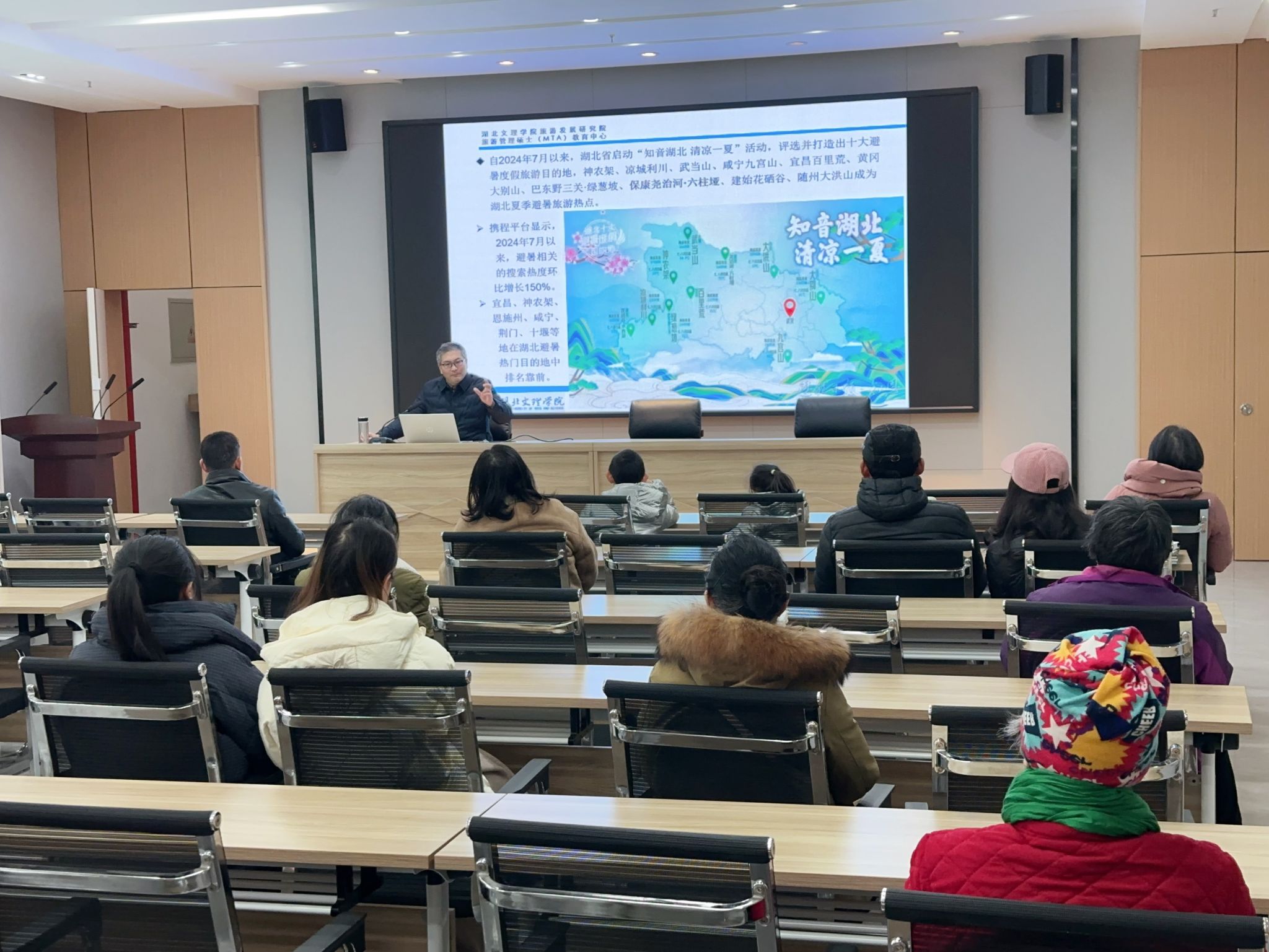 (通讯员 王椰)1月17日下午,受襄阳市图书馆汉江讲坛邀请,2026年第一期“昭明讲坛”在襄城区图书馆顺利举行。本期讲座特邀湖北文理学院襄阳历史文化研究院·汉江研究院执行院长、襄阳市山水文化研究会会长朱运海教授担任主讲,以《文旅消费新业态:森林康养型度假旅游》为主题,为现场听众带来关于森林康养和旅游疗愈方面的科普讲座和政策解读。图书馆读者、山水文化研究会会员、湖北文理学院MTA教育中心研究生和相关文旅企业代表参加此次讲座。