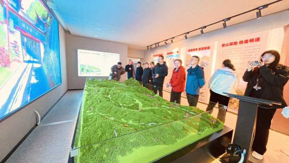 在上午十点半和煦的初冬暖阳中,参加移动课堂的成员集体乘车抵达海拔1525米、森林覆盖率高达95%的国家4A级旅游景区六柱垭。活动伊始,全体人员在景区游客中心认真聆听了工作人员关于景区生态文化保护理念、特色文创产品与农特产开发、基础设施布局以及应急管理措施的详细介绍,为接下来的实地考察奠定了坚实的认知基础。
